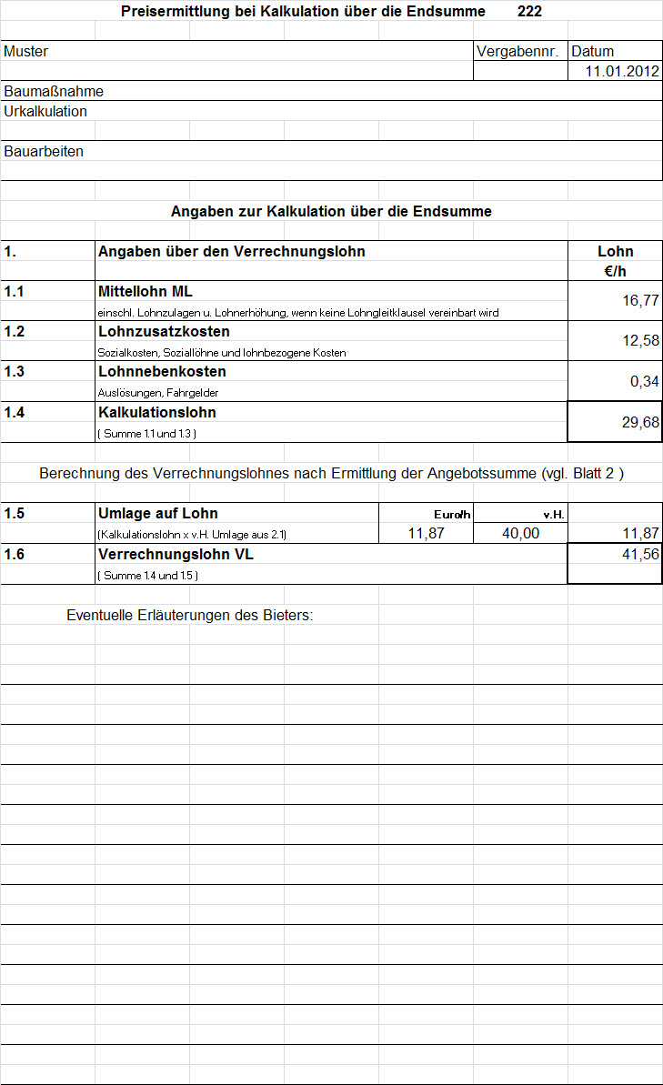Öffentliche Auftraggeber verlangen aber verstärkt vor Auftragserteilung die Hinterlegung der Urkalkulation. Häufig wird jetzt irgendein in der Eile konstruiertes Zahlenwerk in einen Umschlag gesteckt, mit dem Vermerk ,,Urkalkulation".