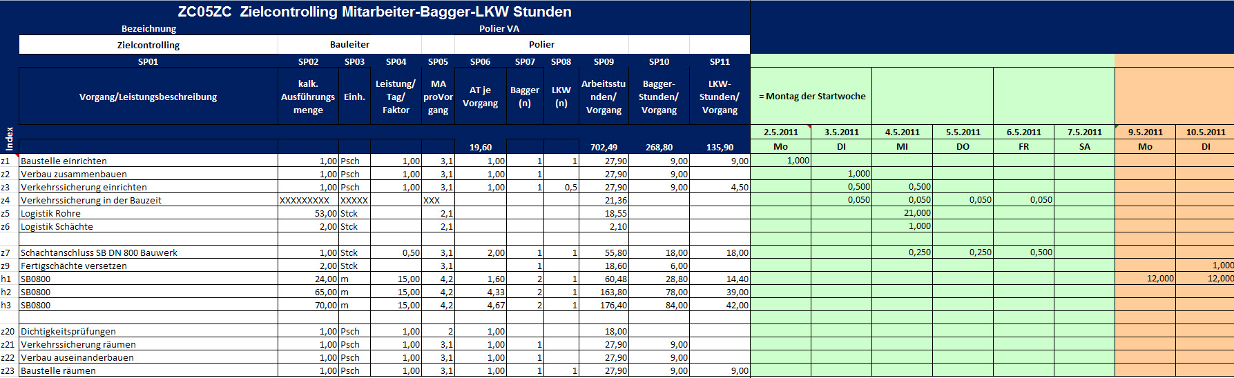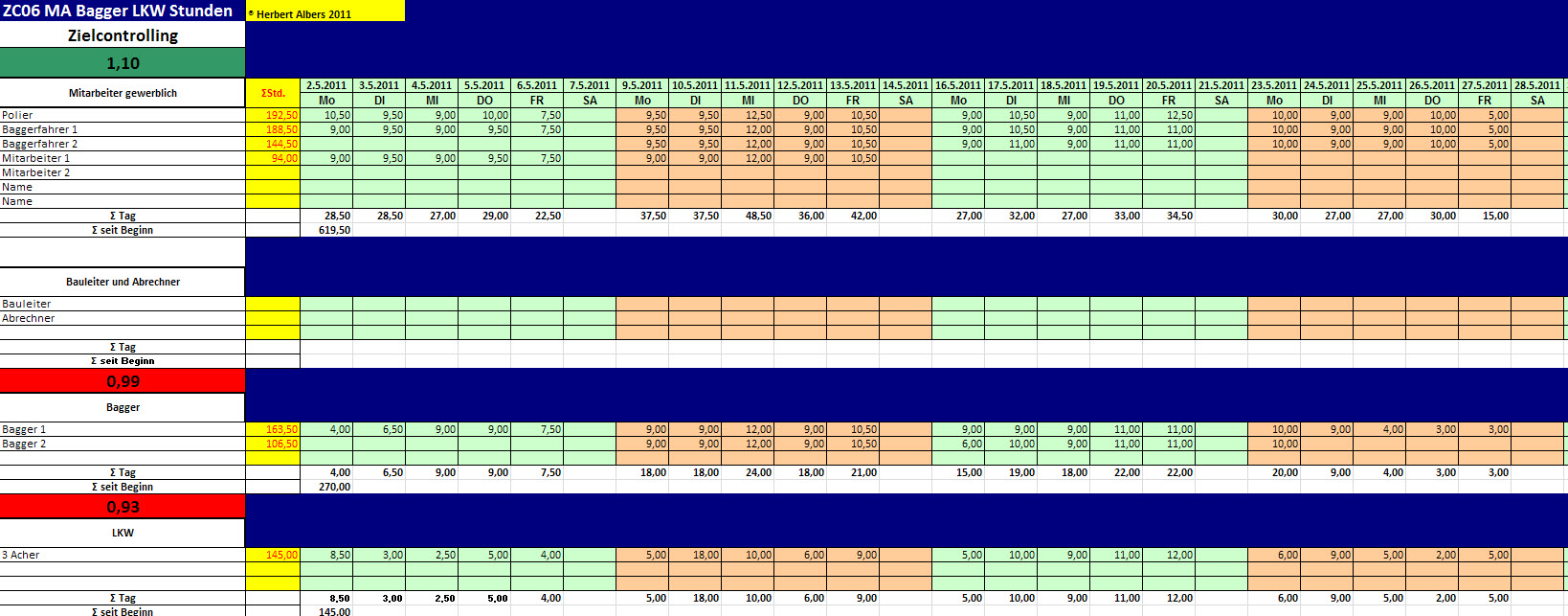 Danach noch die Lohn-, Bagger-, und LKW Stunden.